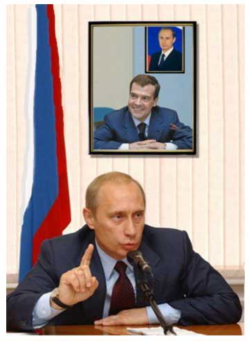 the picture behind Medvedev (in the picture)! Cute political humor